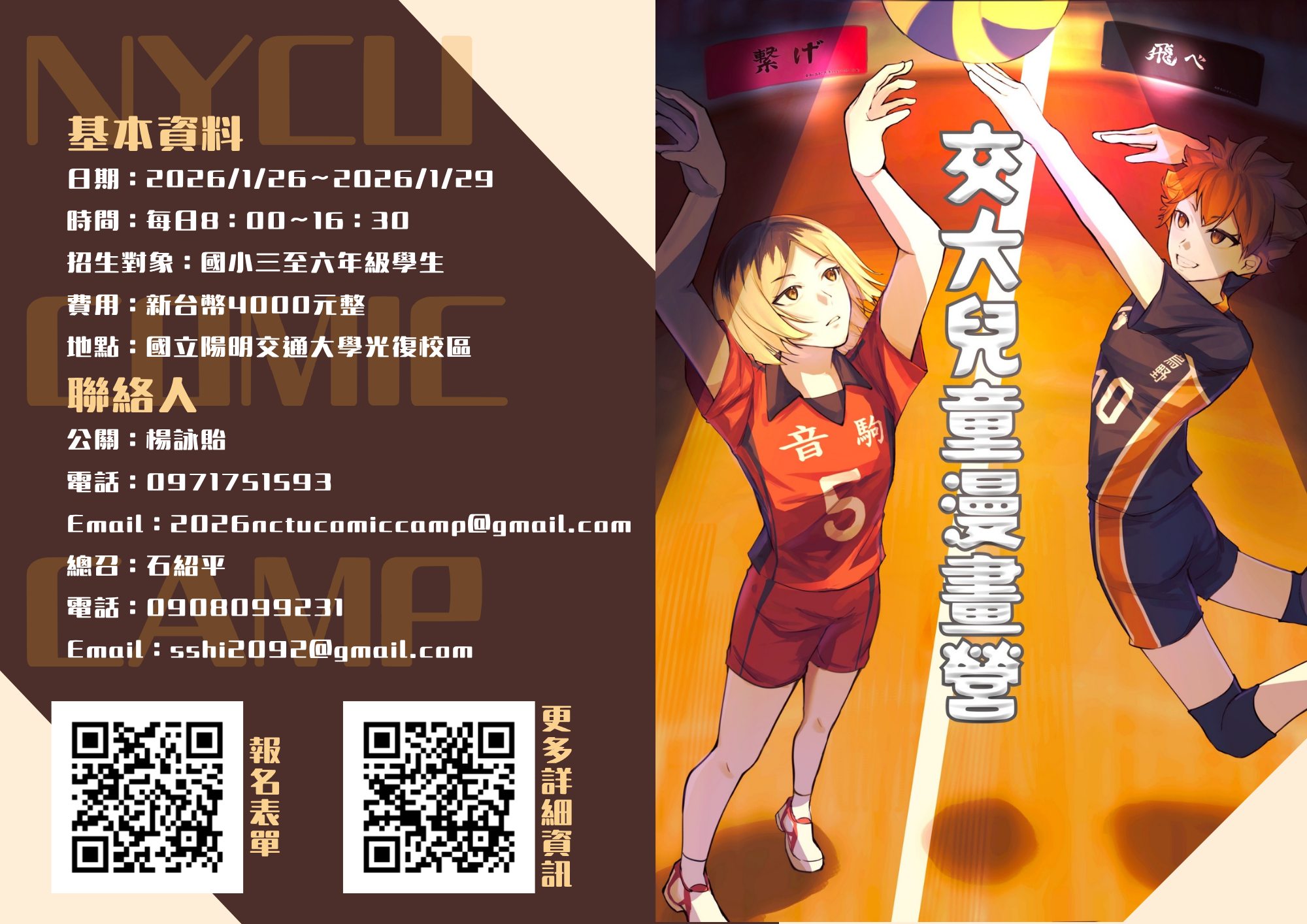 聯絡資訊:石紹平活動總召,聯絡方式: 0908-099231。
